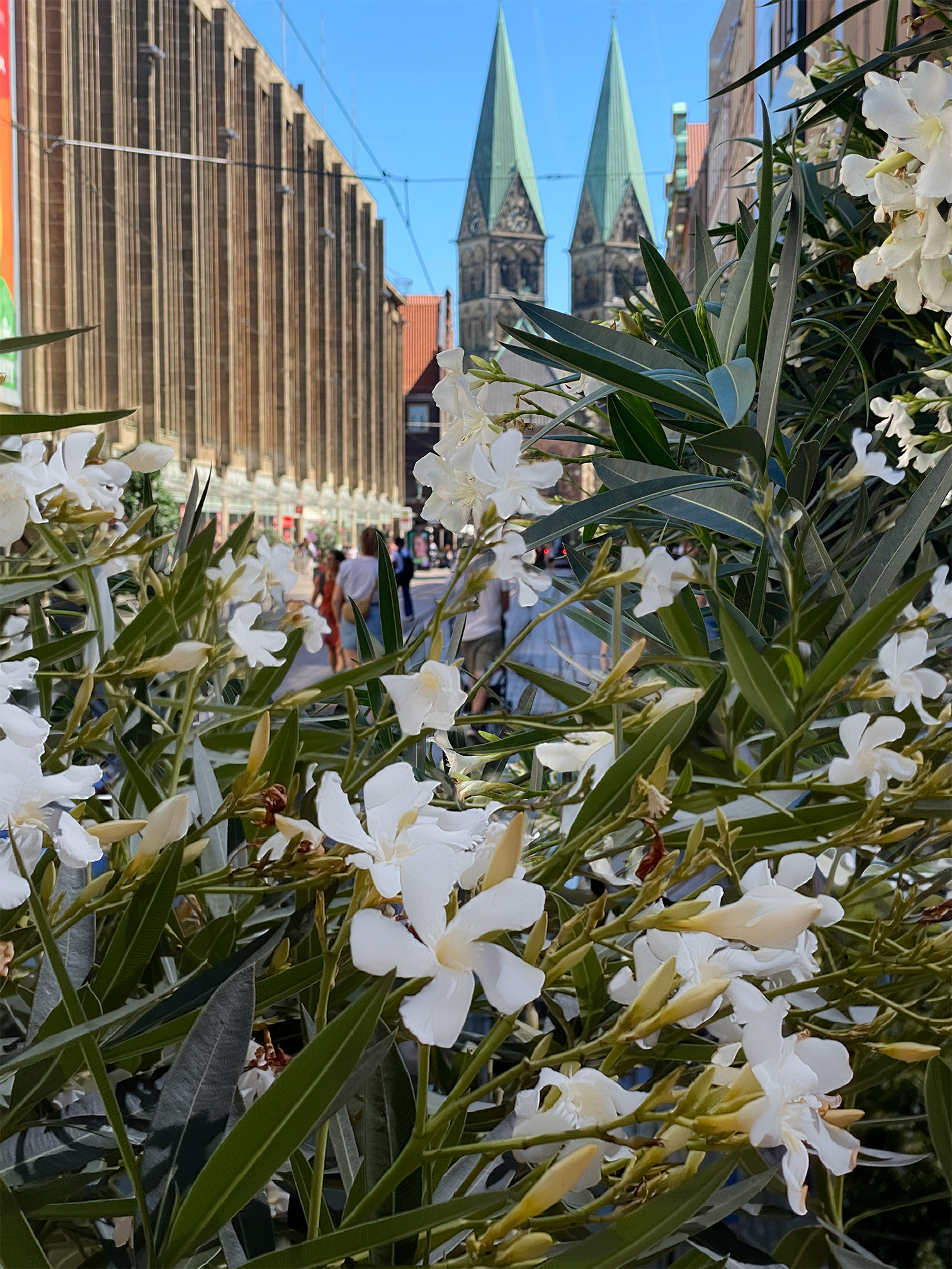 Im Wonnemonat Mai nimmt der Frühling in Bremen City so richtig Fahrt auf: Gemeinsam mit Anliegern, Sponsoren und Pflanzenpaten startet die CityInitiative Bremen e.V. nach den Eisheiligen ihre beliebte Aktion „Bremen City blüht auf“. Blumenampeln und vielfältige Begrünungen in verschiedenen Einkaufsstraßen verwandeln die Bremer Innenstadt wieder in eine Pflanzenoase, die es zu entdecken gilt. Oleander, Mandevillas und weitere farbenfrohe Blumen werden in der Bremer Innenstadt eine einladende Atmosphäre schaffen, Wege und Plätze freundlicher gestalten.