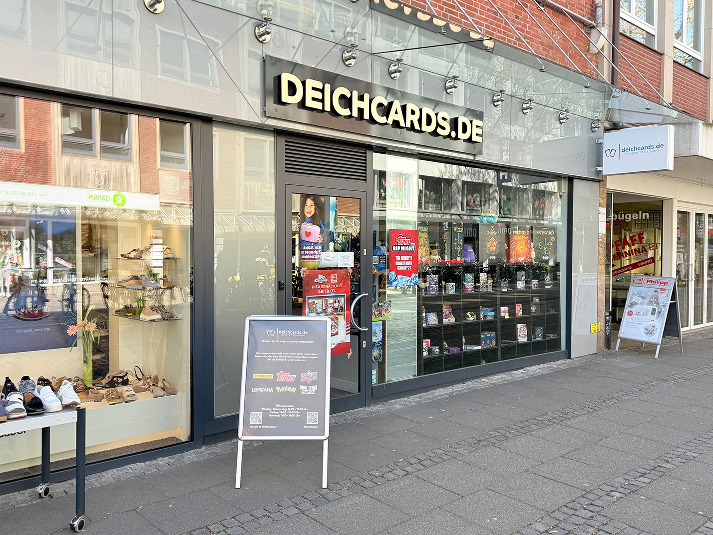Mitten in der Bremer Innenstadt, in der Knochenhauerstraße 39/40, ist Deichcards die führende Adresse für Sammelkarten aller Art. Ob Sports Cards von Topps sowie Panini oder Sammelkarten aus Pokémon und One Piece: hier treffen Sammler, Spieler und Investoren auf ein kuratiertes Sortiment, kompetente Beratung und echte Leidenschaft fürs Hobby.